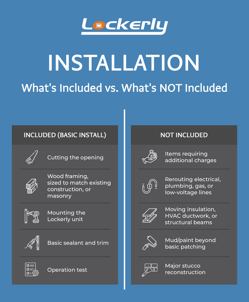 Lockerly is built directly into your garage or exterior wall by certified technicians, ensuring a precise and secure installation that seamlessly integrates with your home’s original architecture.